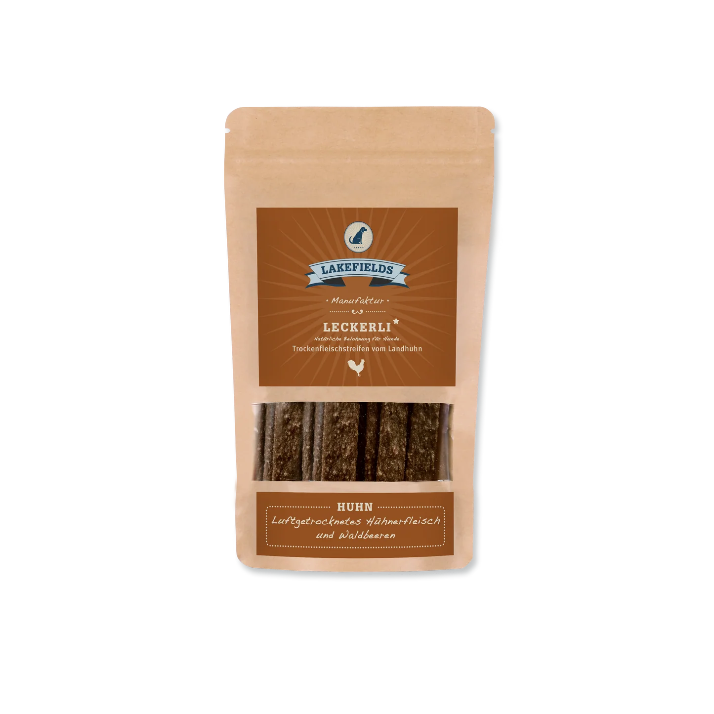 Die Lakefields Trockenfleischstreifen vom Landhuhn sind ein knuspriger und gesunder Knabberspaß für Hunde jeden Alters. Sie können entweder im Ganzen oder in kleinere Stücke zerteilt verfüttert werden. Die Snacks bestehen aus 90 % Hühnerfleisch von heimischen Hühnern aus artgerechter Tierhaltung, 8 % Kartoffeln aus lokalem Anbau und 2 % Waldbeeren, die aufgrund ihres hohen Gehalts an Vitaminen und Mineralstoffen ergänzt wurden. Natürlich sind die Snacks frei von Getreide und künstlichen Aromastoffen. Durch die schonende Lufttrocknung behalten sie ihren intensiven Geschmack und verführerischen Duft – ein Genuss, den jeder Vierbeiner lieben wird.